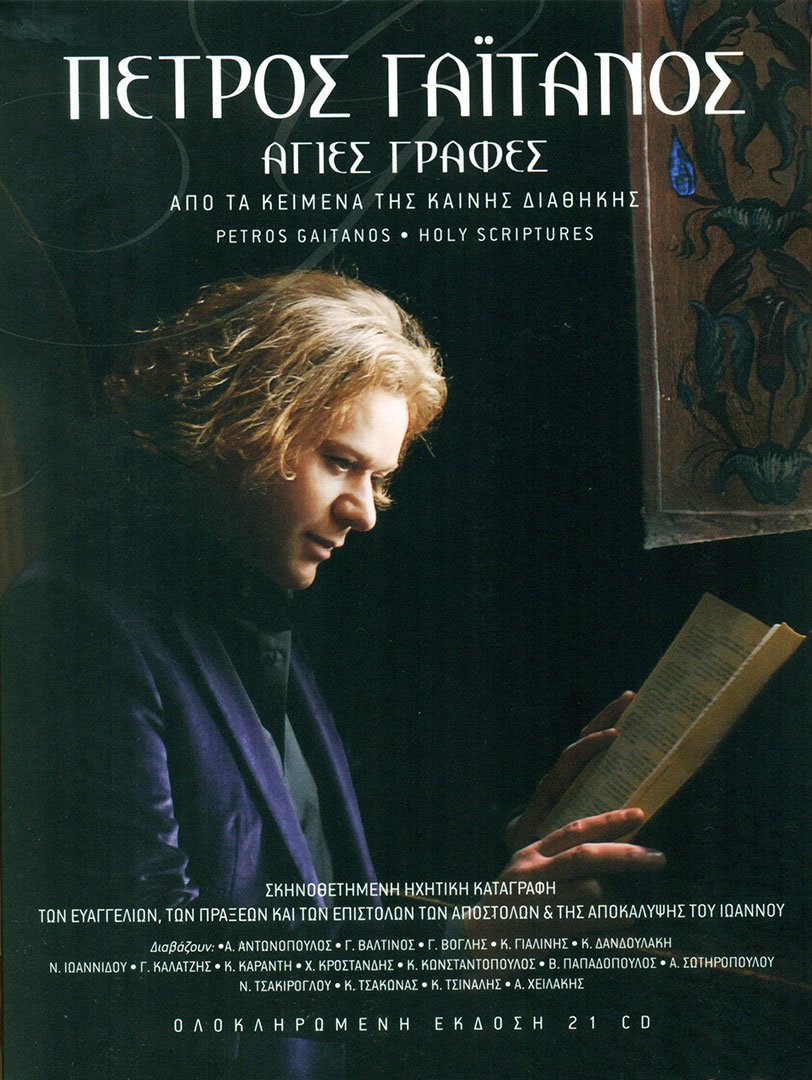 In total, he has recorded discs with hymns of the most important holidays and personages in Christianity, while in 2012 he is completing and releasing a historical work of his, under the title ‘ Holy Scriptures, from the New Testament Texts’ , where the artist records and directs in audio the entire New Testament, by inviting dozens of top-ranking actors and musicians, resulting to a milestone work for Petros Gaitanos, extending to 21 CDs and 24 listening hours, which is already making a great success.